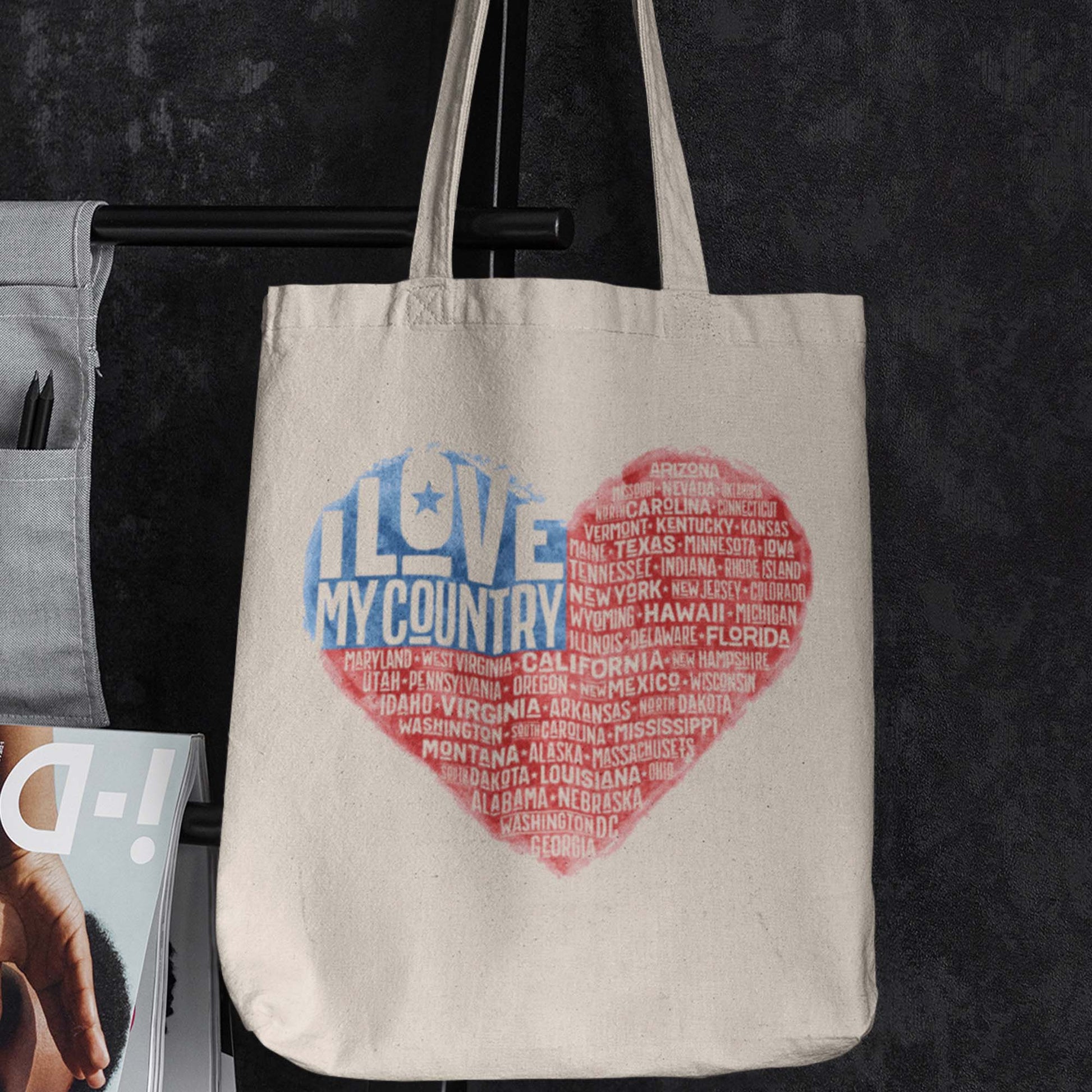 I Love My Country Tote Bag, Patriotic USA Canvas Totes