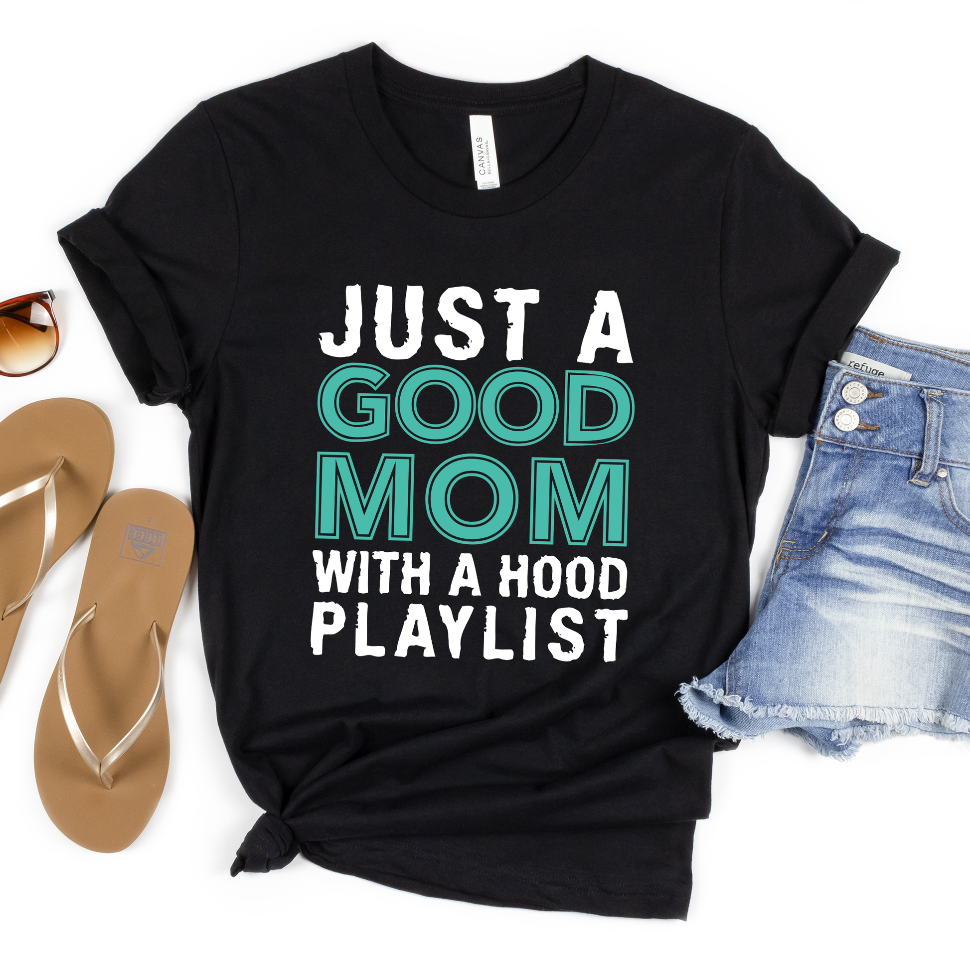 Just A Good Mom With A Hood Playlist Shirt