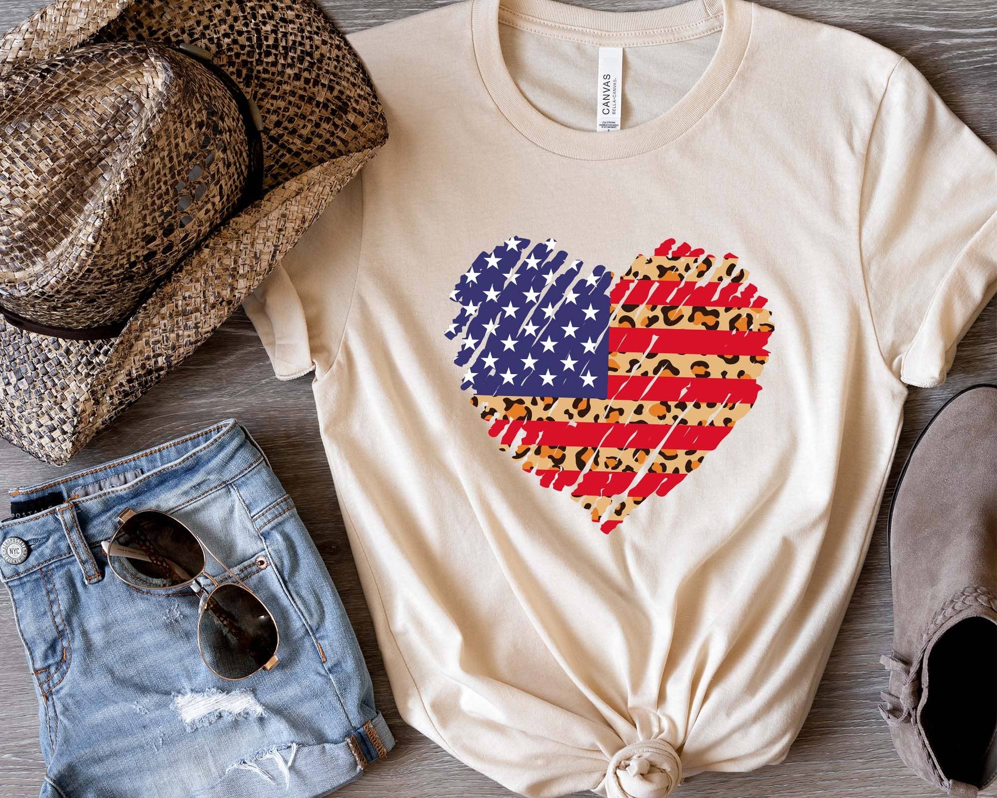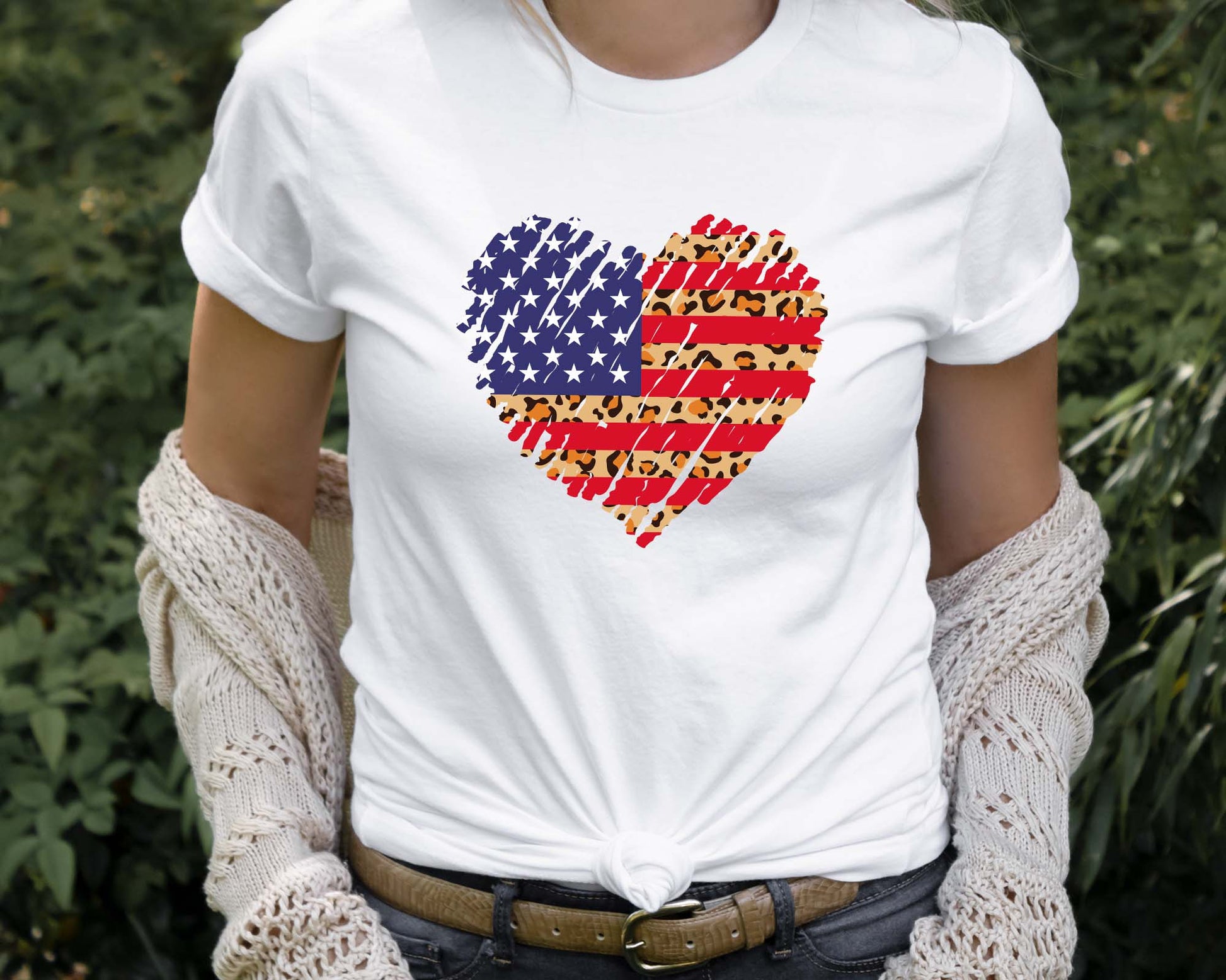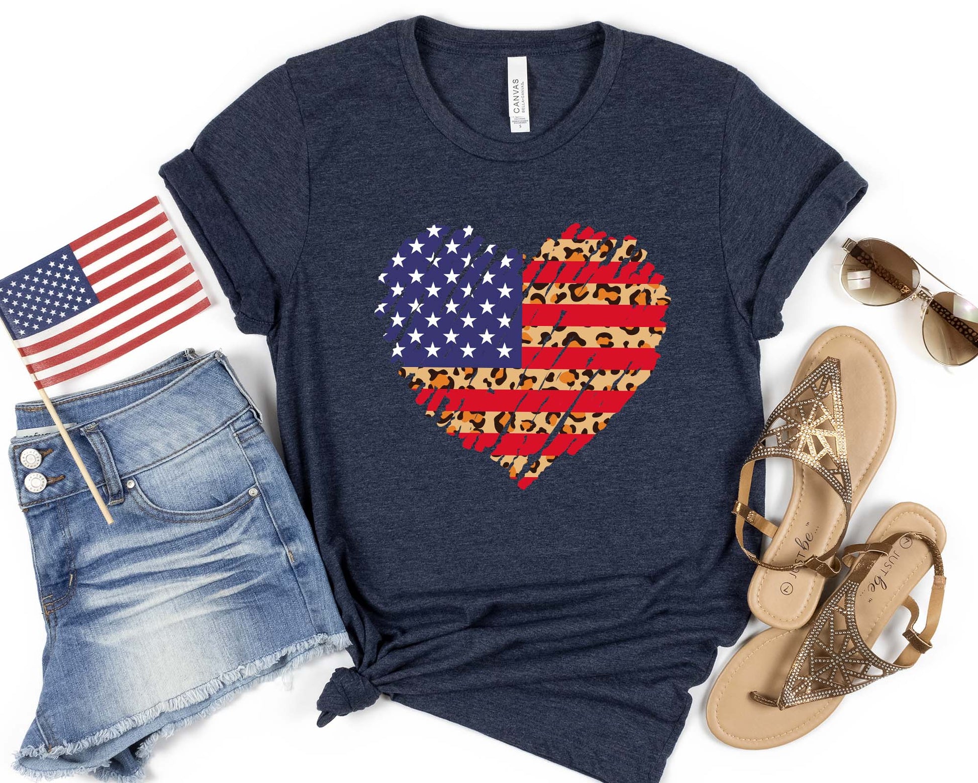 USA Heart Shirt, Leopard Print, 4th of July